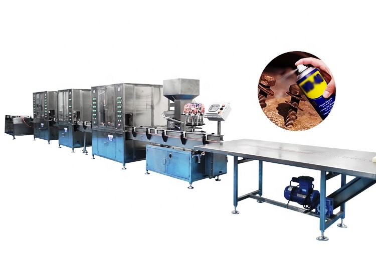 Производственная линия оснащена взрывозащитной системой, сертификатом взрывоустойчивости и высокой степенью безопасности. Подходит для производства освежителя воздуха, спрея для тела, краски, инсектицида, спрея оливкового масла, увлажняющего спрея, средства для удаления ржавчины и других средств.