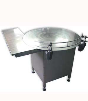 Завершающий элемент аэрозольной линии. Готовый продукт скапливается на столе для дальнейшей упаковки.